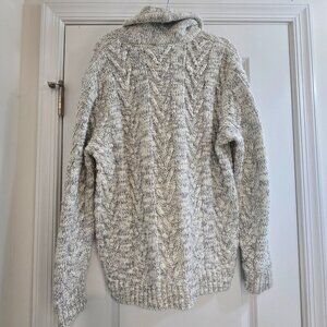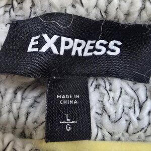 Men's Express Cable Knit Ribbed Sleeve Shawl Collar Sweater - White with Black