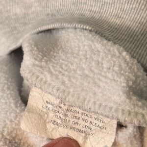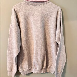 Cozy gray sweatshirt featuring a vibrant pink floral and hummingbird embroidered design. Perfect for casual wear.