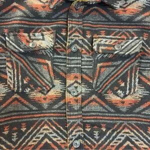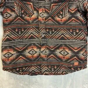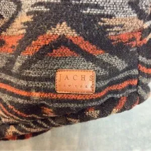 Warm and comfortable Jachs New York polyester and wool Jacket in men's size large. The jacket is Sherpa faux fur lined and features an all over Aztec Southwestern pattern. It is button down and contains four pockets on the front and one on the inside.
