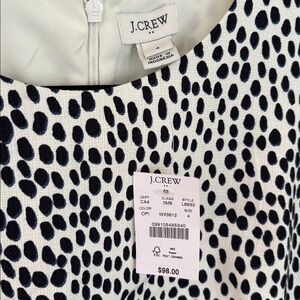 J.Crew sheath dress 100% cotton, fully lined. Abstract polkadots are an ink navy color. Perfect for work setting.