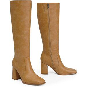 [Square Toe Knee High Boots]:Womens Knee High Boots are made of high quality pu leather,comfortable lining and durable sole, modern square toe and comfortable chunky heels design.