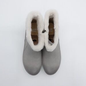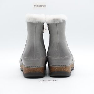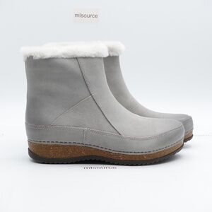 Dansko Mitzy Burnished Suede Side Zip Bootie 9608-795300 Stone - New in box. Shearling is only on the top of the boot and the boot is not shearling lined.