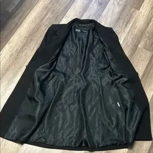 Sophisticated black suit jacket by Zara. Perfect for formal occasions. Sleek and stylish design.