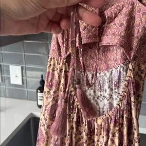 Stylish bohemian SPELL maxi dress with a mix of purple and pink patterns. Perfect for a casual day out. Preloved. Normal, minimal signs of wear.