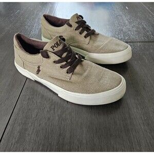 Polo Ralph Lauren Felton Ripstop Canvas Sneakers Casual Shoes Size 9D Tan Preppy