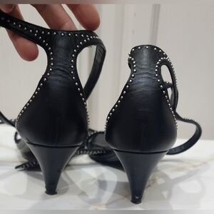 SAINT LAURENT Charlotte Black Studded Ankle Wrap Sandal / Heels Size 38 / US 8