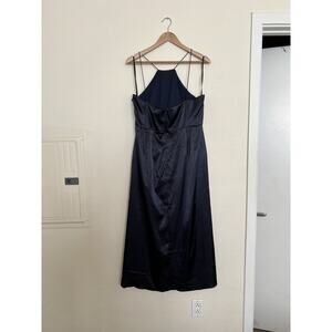 After Six Womens Midnight Charmeuse Tulip Hem Halter Midi Dress Satin $242 MSRP