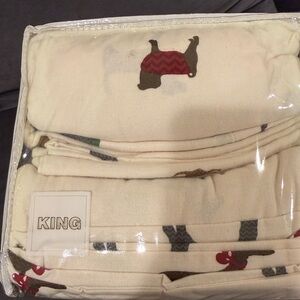 Cozy heavyweight flannel sheet set with dog pattern. Perfect for king-sized beds.