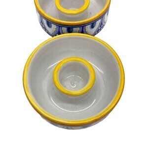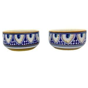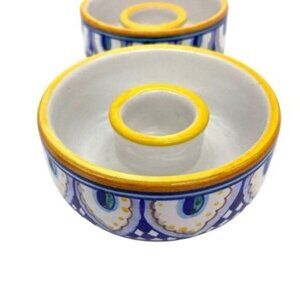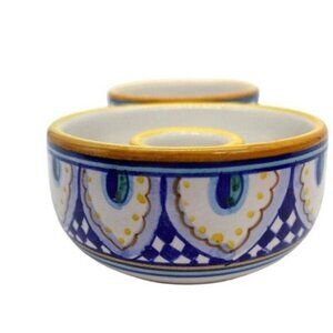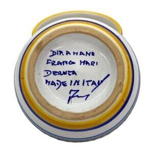 Pair Of Deruta Italy Dip Amano Mano Franco Mari Artist Signed Candle Stick Holders. In excellent condition, no flaws. Signed by artist. Approximately 3 1/4” in diameter 1 1/2” tall.