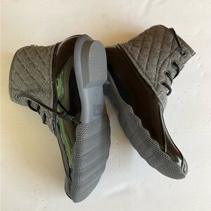 Ocean+Coast Waterproof Boots Quilted Gray Fabric Black Rubber Rain Snow 8 Medium
