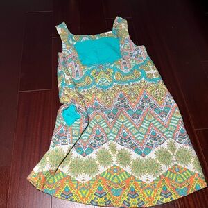 Eye-catching mini dress with geometric patterns. Sleeveless and vibrant. Ideal for standout style.