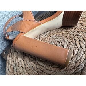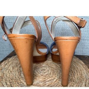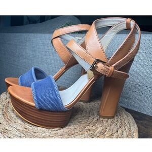 Michael Kors Leather & Canvas Platform Heels Size 9.5M Tan Blue Crisscross Strap