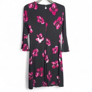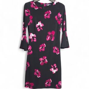 Tommy Hilfiger Floral Dress Women's Size 2 Bell Sleeve Stretch Red Pink Black