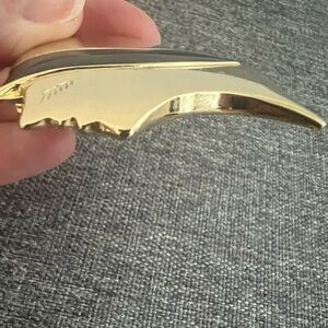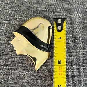 Vintage M J Enterprises Gold Tone and Black Enamel Flapper Lady Profile Brooch Pin