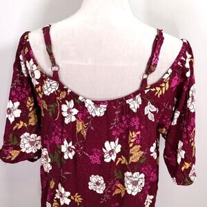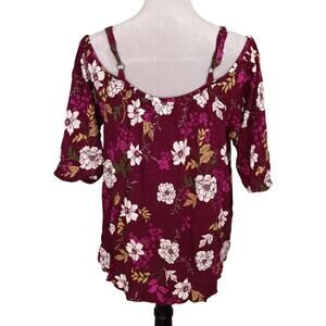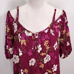 Torrid Top Plus Size 1X Plum White Floral Off Shoulder Spaghetti Straps Blouse