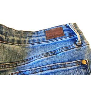 Small distressing on pockets, otherwise in good condition. Waist (laid flat) = 16 inches, inseam = 31 inches.