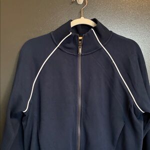 Spanx AirEssentials Pique Full Zip Track Jacket navy blue Sz S