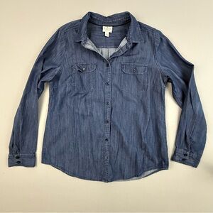 St. John's Bay Shirt Women's Large Chambray Long Sleeve Button Down Embroidered