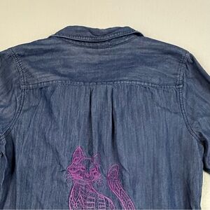 St. John's Bay long sleeve button down shirt with embroidered cat on back
