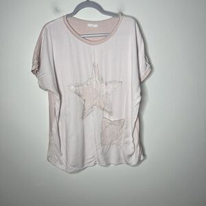 Made In Italy Top Womens One Sized Tee Shirt Pink Star Patch Boho Slouchy Pocket