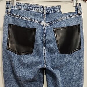 REVOLVE JONATHAN SIMKHAI STANDARD The River high waist faux leather zipper fly buttery soft and stretch fabrics straight leg jeans size 28