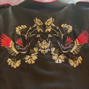 Chic military style wool jacket with stunning embroidery and red piping . Ideal for a polished look.