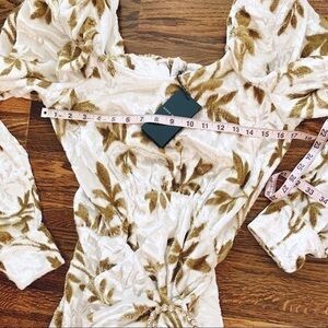 Dodo Bar Or. New with tag size Italy 42/ US 6 (small). See attached size chart. Velvet with metallic pattern. Wrap detail at waist with jewel buckle. Scoop neck. Long puff sleeves. Retail $1495. N1
