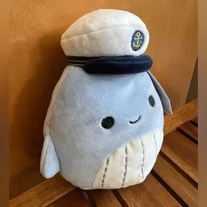 NWT 5” Samir the Whale with Sailor Hat Squishmallows navy nautical anchor cap