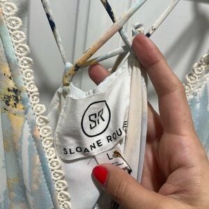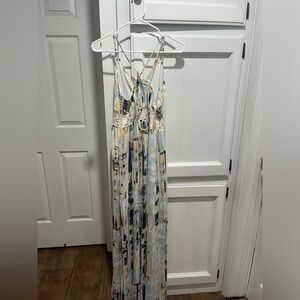 NWT SLOANE ROUGE Blue abstract flowly dress large