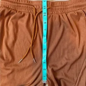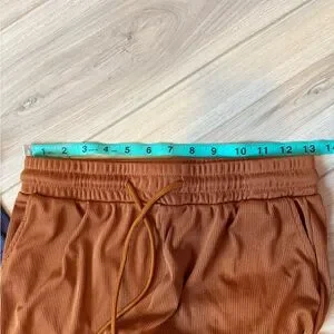 -Size Large on tags, but fits like a small with 13” across waist flat (unstretched)