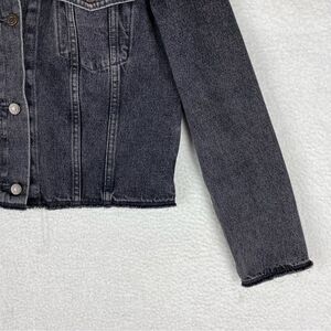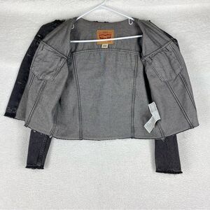 Levi's Jacket Womens M Black Denim Cropped Trucker Raw Edges Collarless Fade