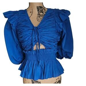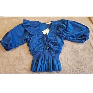 Sea New York Paco Solid Puff Sleeve Aqua Top Women's Sz S NWT New