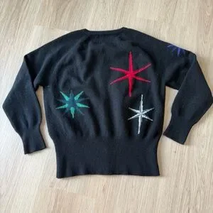 Jumper 1234 100% Cashmere Cardigan Sweater Christmas Holiday Star XS