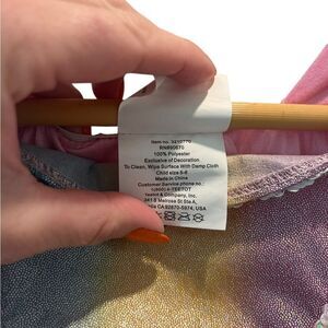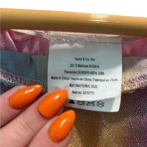 • Iridescent rainbow pastel skirt with sparkly unicorns and stars.
