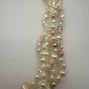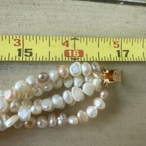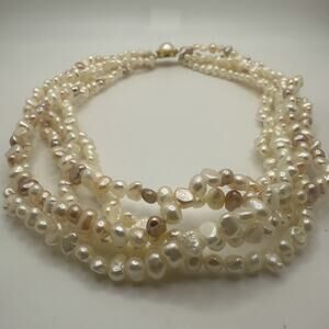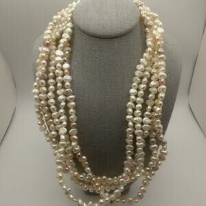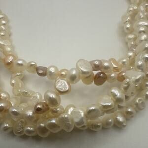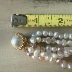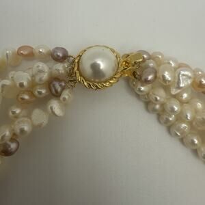 Vintage Faux Pearl Necklace Multi Strand White Pink Purple 16.5”