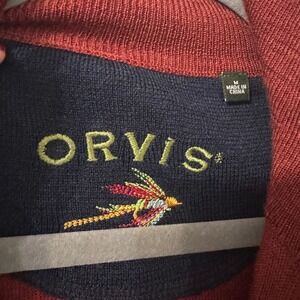 Keywords: Orvis sweater, mens knitwear, merino wool, quarter zip, red sweater, casual pullover, outdoor apparel, fall fashion, winter essential, layering piece, classic fit