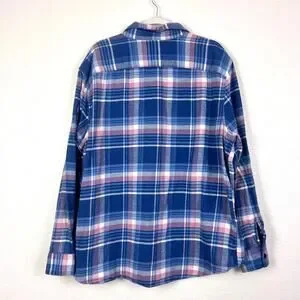 American Eagle Men's Super Soft Flannel Button Down Shirt XXL Blue Pink Plaid