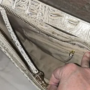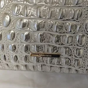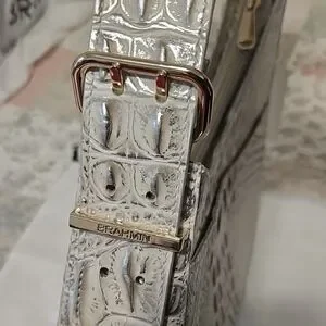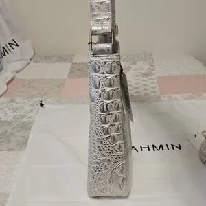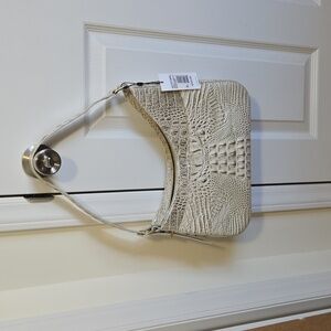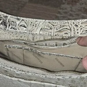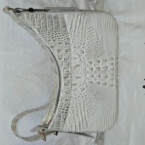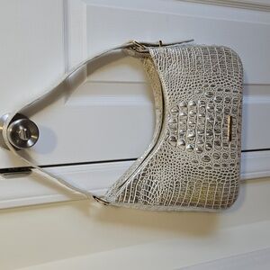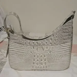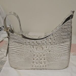 BRAHMIN Abbott Shoulder Bag in Ivory Dream Melbourne croc embossed leather with gold toned hardware.