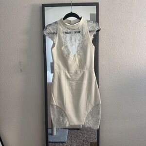 Miss Circle Cream Lace Mini Dress