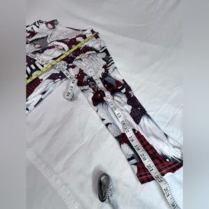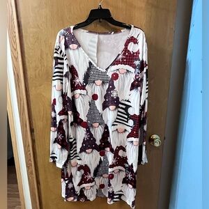 Charming long sleeve dress with playful gnome print. Features a festive red and white color scheme. Perfect for holiday gatherings. From a smoke free and pet free home. See photos for measurements.