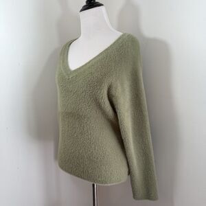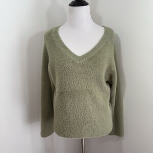 Rachael Zoe Sweater Small Teddy Bear Fluffy Fuzzy V-Neck Soft Green Cozy Warm