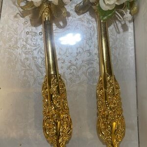 Elegant Gold Cake Knife and Server Set with White Floral Accents