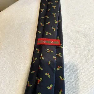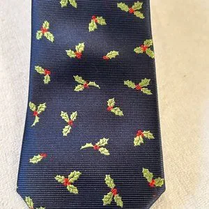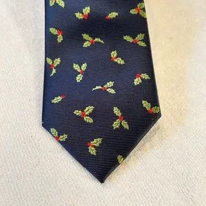 Holly-Day Christmas Tie by Ho*Ho*Ho Navy with Green and red holly.