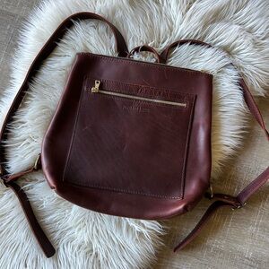 Portland Leather Tote Backpack Large Dark Brown Cherry genuine leather zip NEW $340