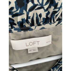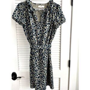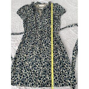 Loft Navy Blue and Stone Floral Short Sleeve Dress with Tie and Ruffels Sz MP