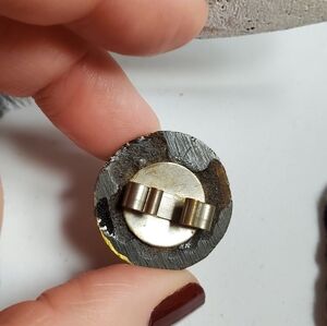 Multicolor circle handbraded circle dangle earrings. 1.5" wide
