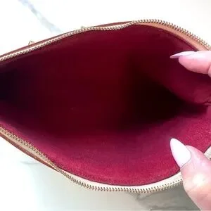 The interior is lined in a burgundy microfiber lining.
