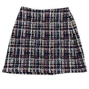 Keywords: Halogen skirt, Tweed skirt, Ruffle skirt, Asymmetrical skirt, Mini skirt, Size 6, Career skirt, Party skirt, Womens skirt, Colorful tweed, Modern skirt, Business casual, Designer skirt, Halogen clothing