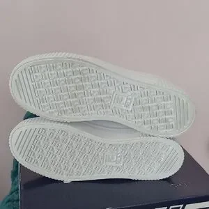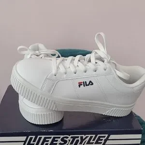 Crisp white sneakers with iconic Fila logo. Ideal for everyday style.