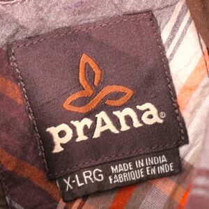 Prana XL Benton Short Sleeve Button Down Shirt Plaid Standard Fit Organic Cotton